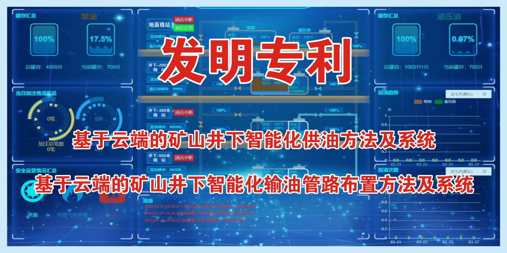 凡口鉛鋅礦井下680米智能供油系統 目前正有序施工中, 預計9月底完工并投入使用。該項目為全國首創, 由韶關企業進行技術攻堅 并申請多項國家專利, 擬申報吉尼斯世界紀錄 “全球最深的智能供油系統”。 凡口鉛鋅礦井下智能供油系統 需在地面設置橇裝加油裝置, 并分別在地下 330米、480米和680米處 建設智能化供油系統, 通過鉆孔鋪設輸油管線, 將油品從地面輸送到井下。 地下330米智能加油點, 目前已進入收尾階段, 現場有兩根 從地面裝置接下來的輸油管, 用于工程車加油, 另一邊也有兩根輸油管輸送到 地下480米和680米的智能加油點。 別看油管很細,鉆孔不大, 但施工難度并不小, 全長3千多米的輸油管, 垂直打孔偏差不能超過1米。 作為亞洲最大的 單體鉛鋅銀礦生產基地, 凡口鉛鋅礦 有井下工程車輛和設備100多臺, 井下用油量大。 井下智能化供油系統啟用后, 不僅解決井下用油安全、環保風險, 同時降低生產用油成本, 推進凡口鉛鋅礦建設智能化礦山, 實現“無人開采”。 如果鉆孔偏差太大,就找不到鉆下來的孔,影響輸油管道的布設,增大成本。3千多米有5千多個焊接點,所有的焊接口都要達到高壓管道的焊接要求,這個項目是全國首創,在全國所有礦山企業中,我們是首次使用通過輸油管道往井下輸油,并且實現智能控制的方案。 這個月底把地下330米加油點完工,開始加油,9月底把底下480米和680米開通使用。希望通過這個項目打造創新科技的韶關樣板,把先進的經驗和技術推廣到全省、全國乃至全球。